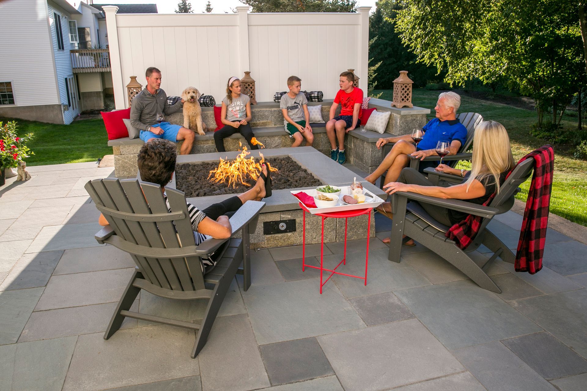Traditionally, a fire feature is wood burning, but we have seen a large increase in the desire for propane. That’s because it’s easy! Some of the advantages of propane include no smoke, cleanup, or prep. That means you can turn it on for an hour to enjoy and then turn it off when you are ready to leave. Wood burning features are popular too because it creates an experience. Building a fire can be a fun family/group activity that sparks bonding and conversation.
