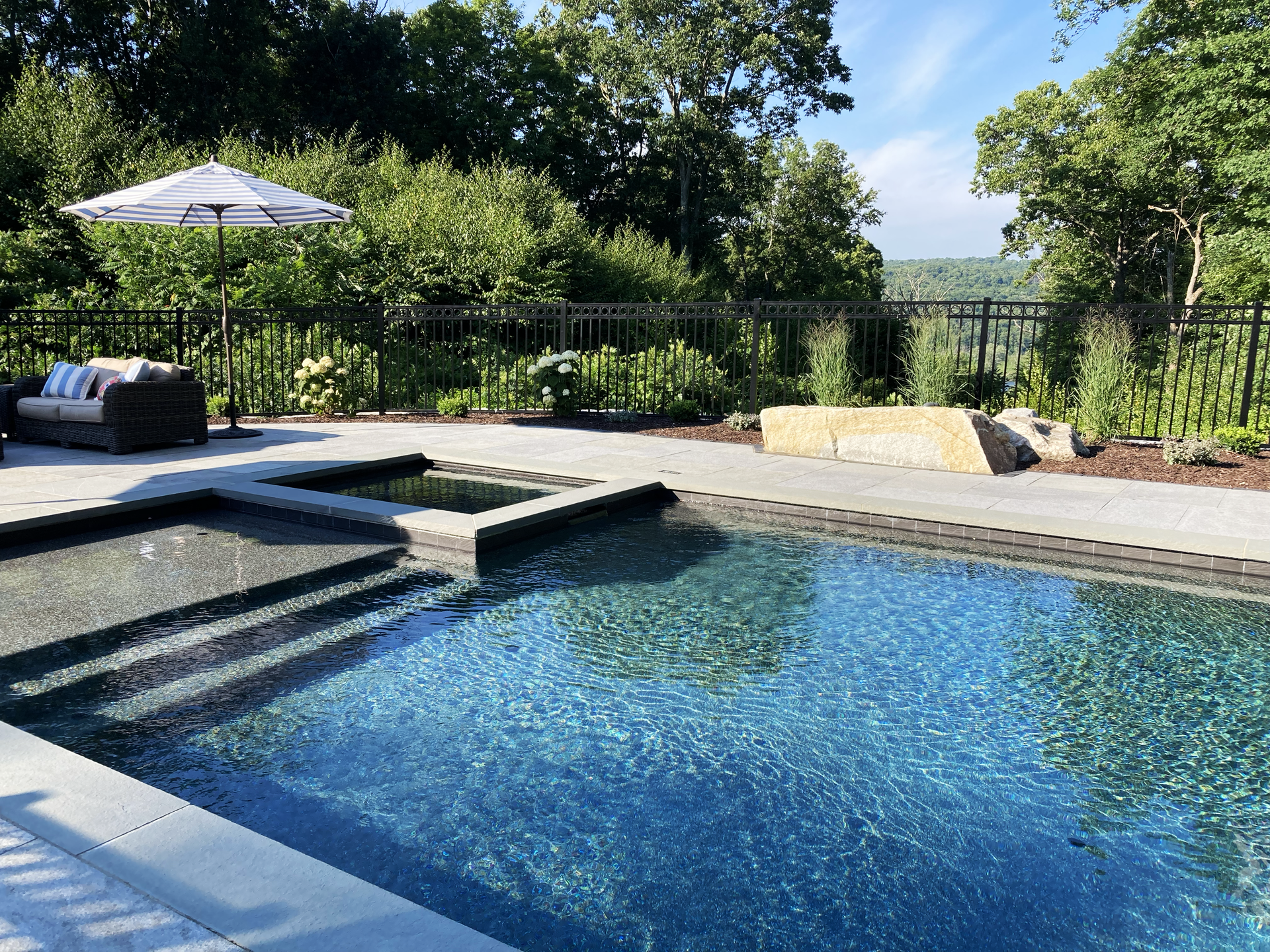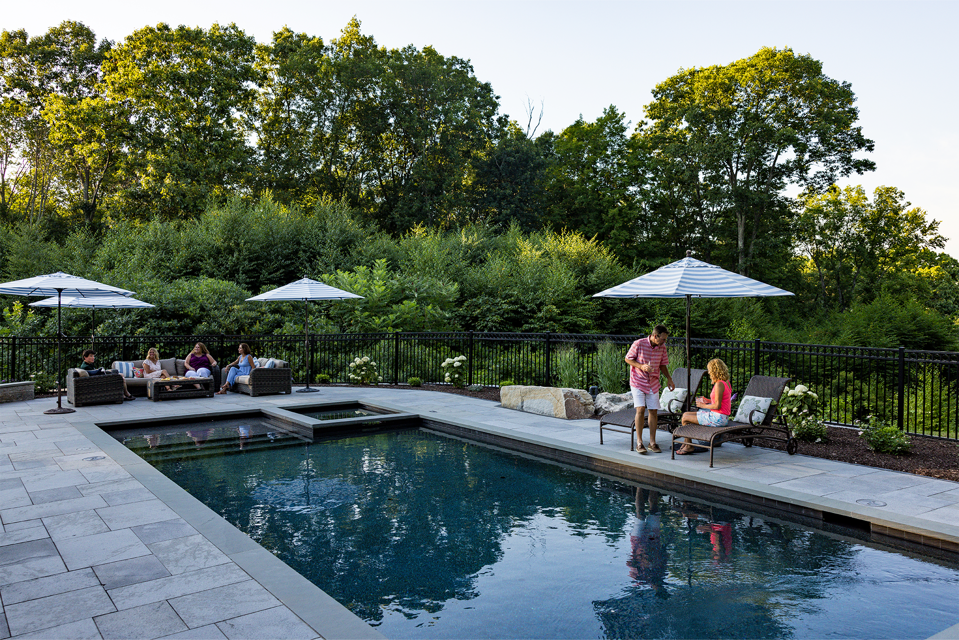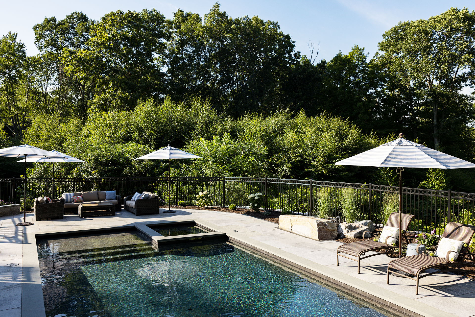 There was lots of discussion as to where the pool should be placed. Ultimately the homeowners wanted to preserve the area where they planted a large vegetable garden and they wanted to take advantage of the stunning views of the side of their garage.